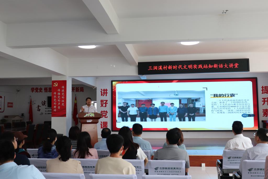 随后,全体党员观看了三涧溪近五年发展的专题纪录片,感受乡村振兴的新变化。三涧溪村村主任叶贵芬讲述了三涧溪村由穷到富,由乱到美,由“贫困村”、“问题村”到文明村、先进村的奋斗历程和华丽蜕变,介绍了村党委以党建为引领,以党员四邻联动为抓手,全面推进乡村振兴建设的经验做法。