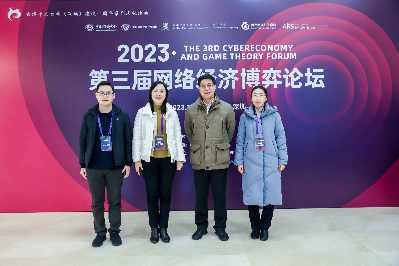 2023年12月23日,第三届网络经济博弈论坛于广东省深圳市举行,本次论坛由CCF计算经济学专业组和香港中文大学(深圳)理工学院共同承办。区块链金融实验室党委书记朱传武、常务副主任沈万芳,实验室教师陈东阳、杨瑞桐参加论坛。