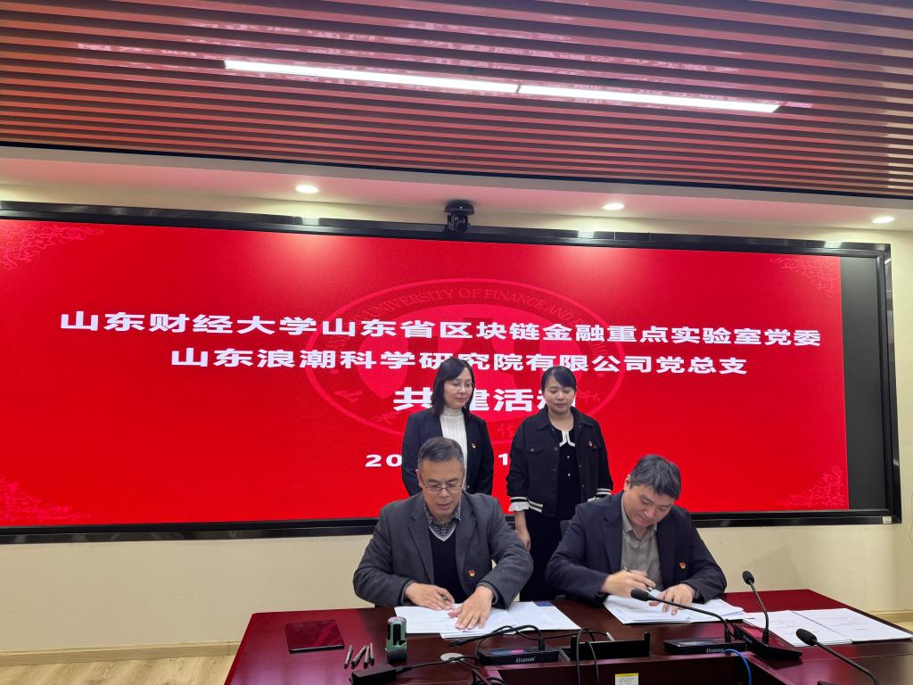 会上,魏子重分别与武方安、刘培德签署党建联合共建协议和“浪潮-山东财经大学联合研究中心”共建协议。双方将以党的二十届四中全会精神为指引,以此次共建活动为起点,持续深化党建与业务双融合,聚焦区块链金融、可信数据空间、数据要素等前沿技术研发、成果转化等核心领域,扎实推进“浪潮-山东财经大学联合研究中心”建设,推动共建协议内容落地生根、开花结果,切实把合作共识转化为发展实效,共绘优势互补、携手共进的发展新蓝图。
