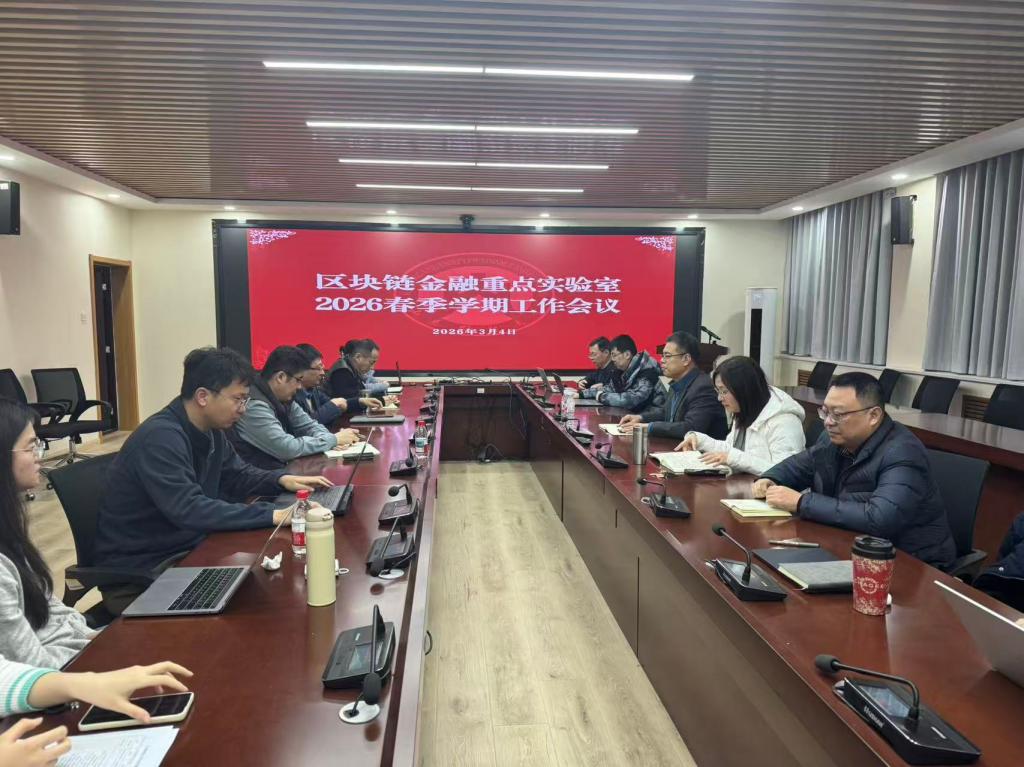 3月4日下午,区块链金融重点实验室组织全体教职员工集中收看学校2026年度工作动员部署会,学习领会学校年度工作总体思路与任务安排。为确保学校精神传达到位、落实见效,实验室接续召开2026年工作部署会议。