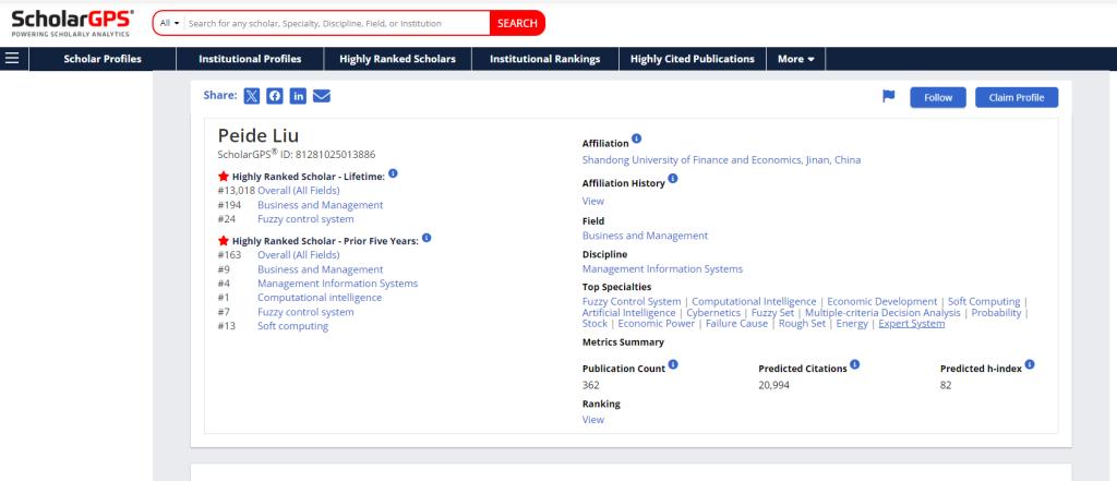 近日,国际学术排名机构ScholarGPS发布了2024年全球前0.05%顶尖科学家榜单(Highly Ranked Scholars),榜单分为“终身”(Highly Ranked Scholar - Lifetime)和“近五年”(Highly Ranked Scholar - Prior 5 Years)两个类别,中国内地有286位学者入选“终身”榜单、1600位学者入选“近5年”榜单。我校刘培德教授凭借突出的学术成就和广泛的国际影响力,成功入选“终身”榜单和“近5年”榜单。其中,在模糊控制系统专业“终身”榜单中,全球排名第24位;在计算智能专业“近5年”榜单中,全球排名第1位。
